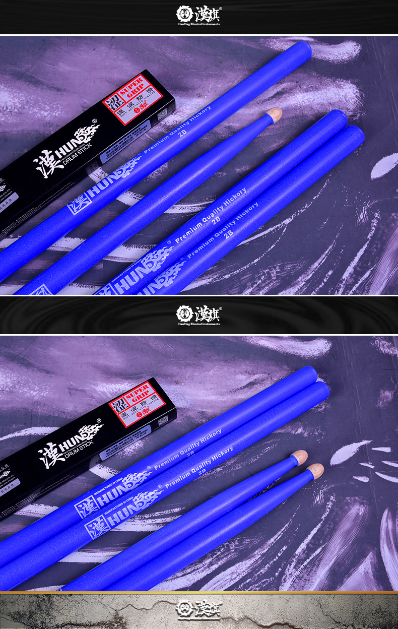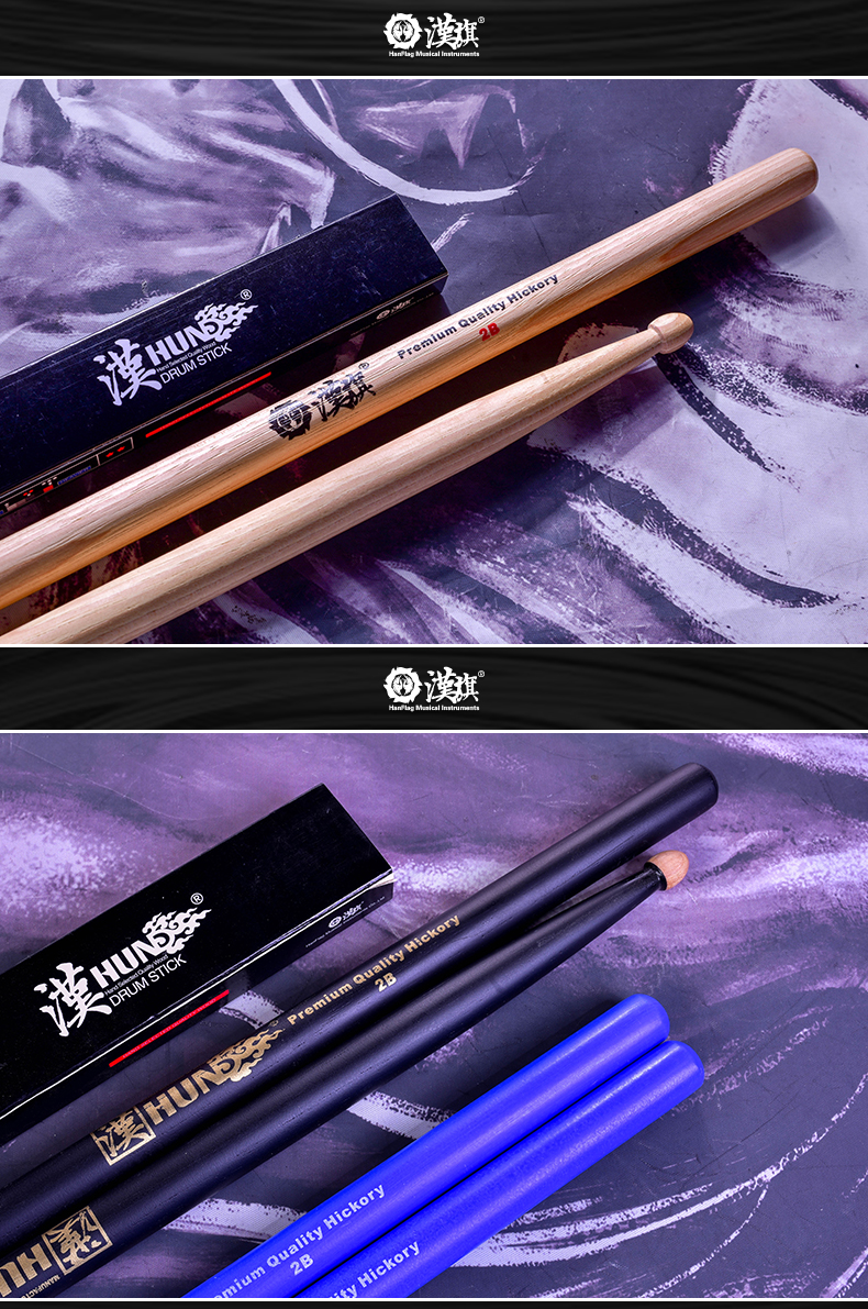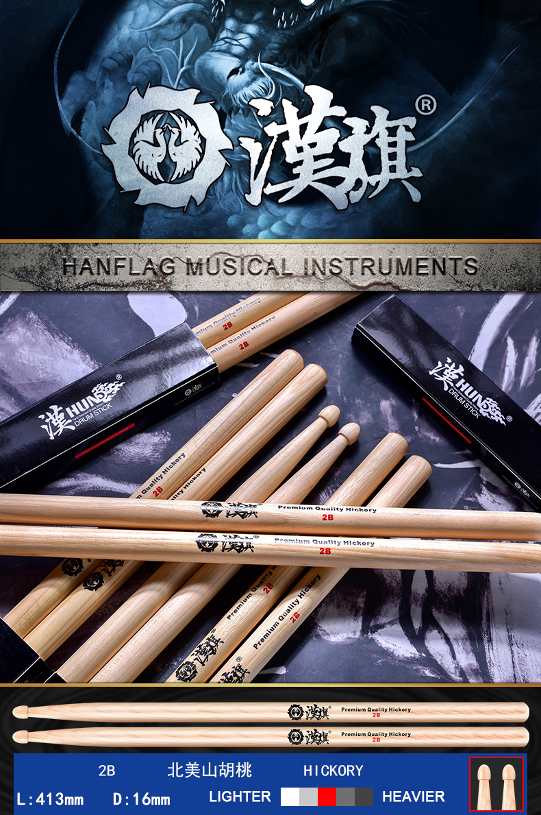 详细简介:官方小程序直通:汉旗架子鼓鼓棒2B加重加粗胡桃木质鼓槌 汉牌HUN系列鼓锤