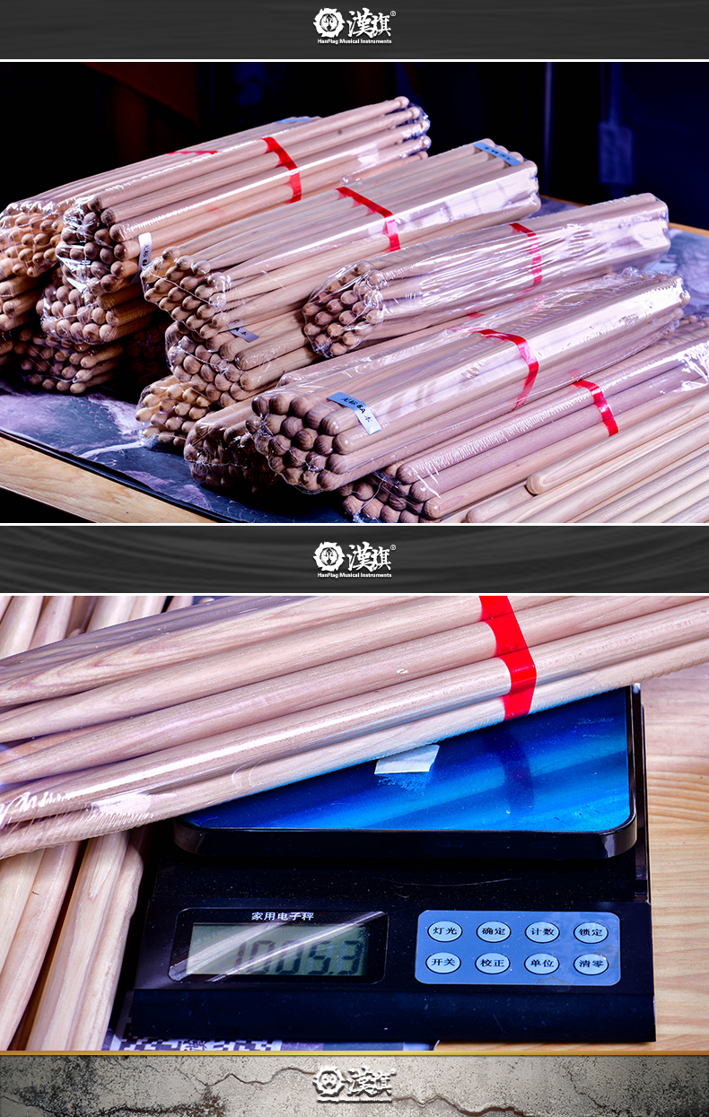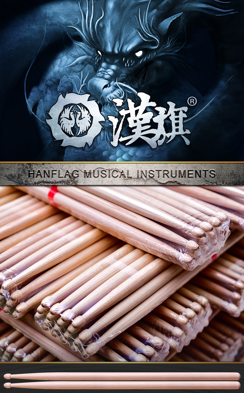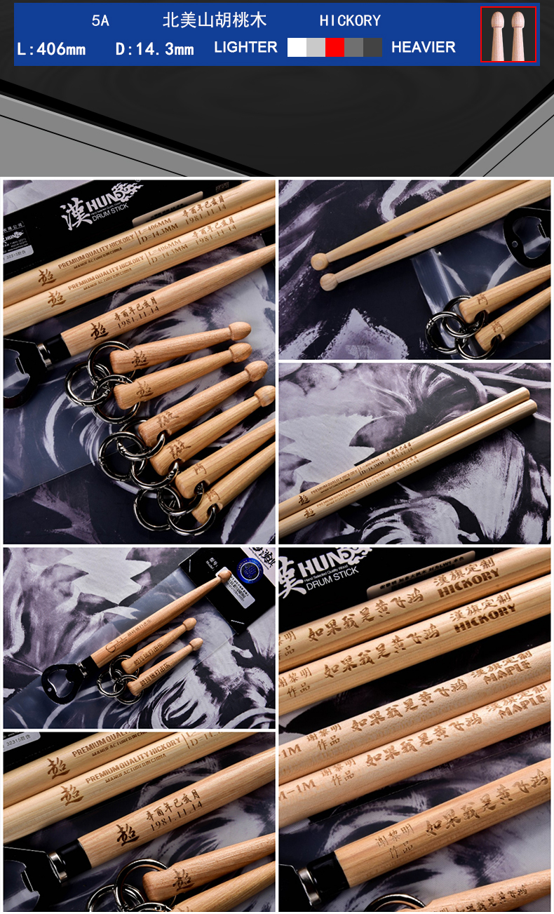 详细简介:官方小程序直通:汉旗 十对装 DIY 5A架子鼓鼓棒 自由配对 免费雕刻图案刻字