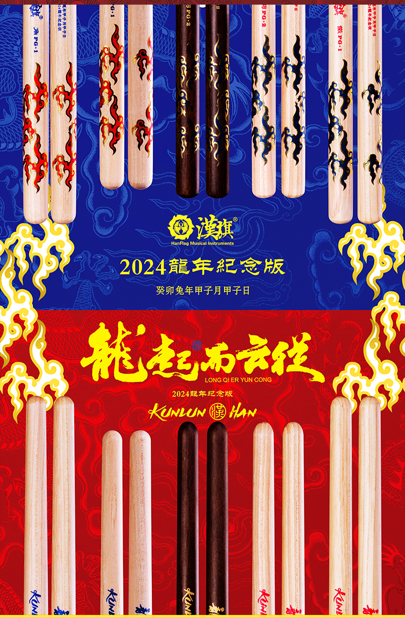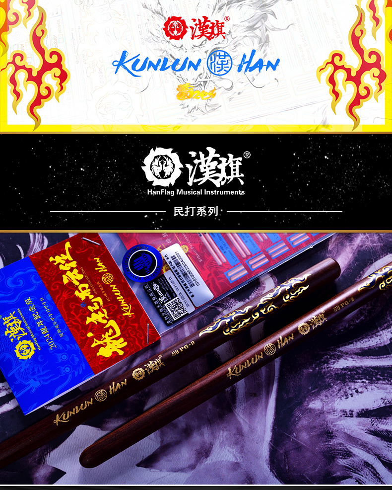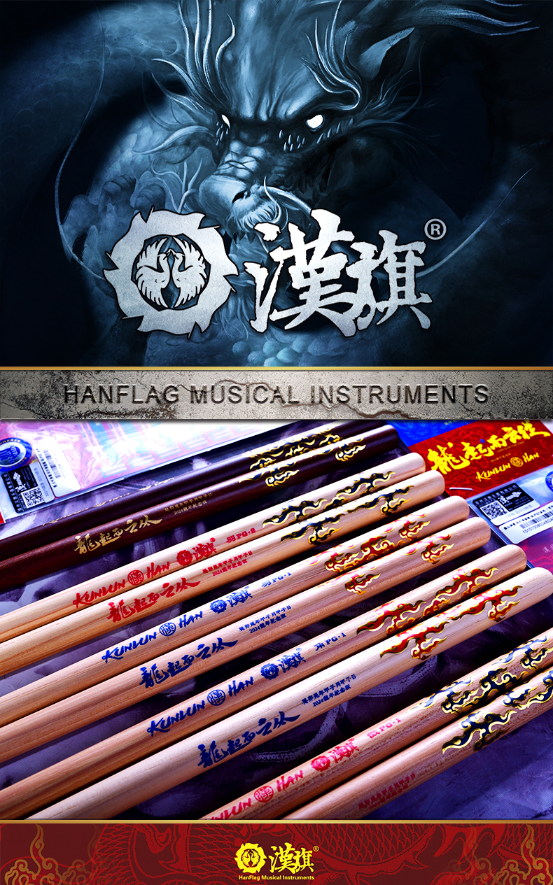 漢旗 民打排鼓槌 中国鼓鼓棒羽PG 大叶黄檀五音排鼓槌 龙年纪念版,汉牌鼓棒官方小程序商城