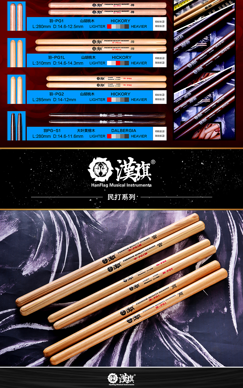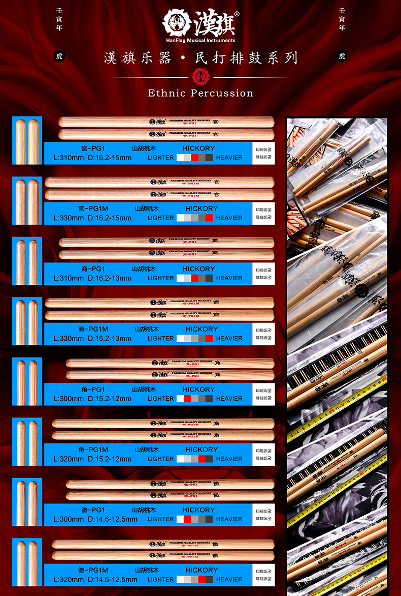 详细简介:官方小程序直通:漢旗 民打排鼓槌宫商角徵羽PG1/PG1M山胡桃木中国鼓五音排鼓鼓棒本色 湿涩防滑