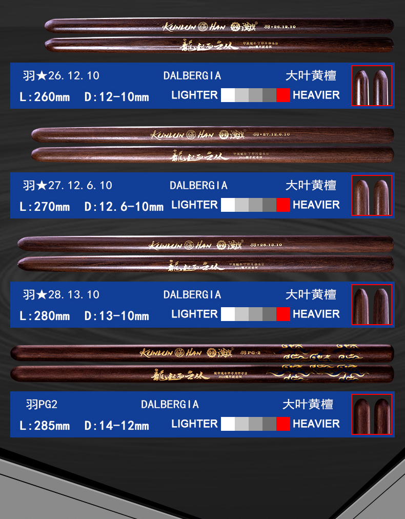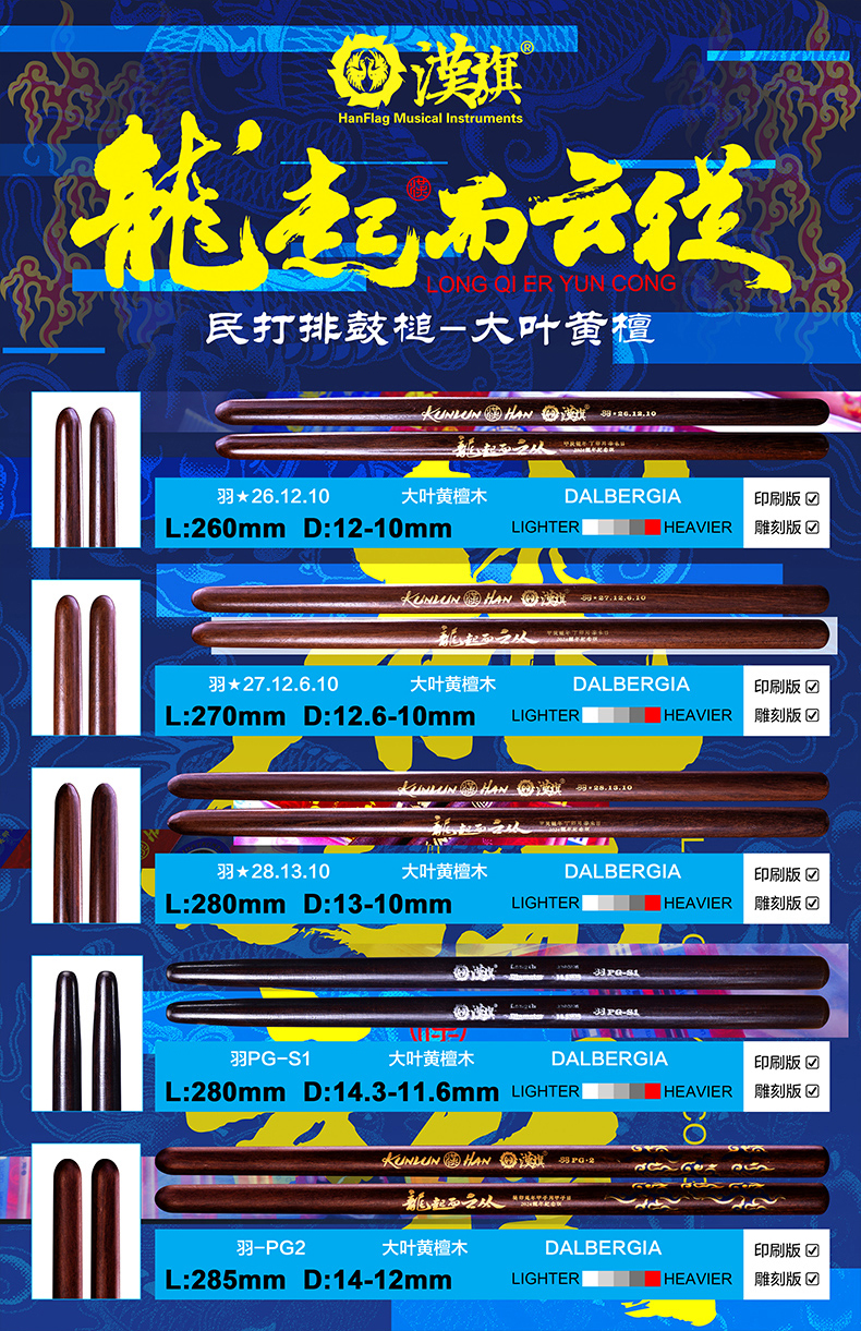 详细简介:官方小程序直通:漢旗 民打排鼓槌 中国鼓鼓棒羽PG 大叶黄檀五音排鼓槌 龙年纪念版本色 湿涩防滑