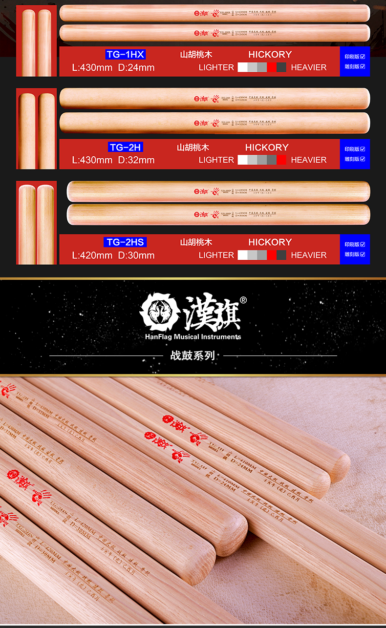 详细简介:官方小程序直通:漢旗 中国民打大鼓鼓槌 晋鼓 战鼓 建鼓鼓棒 北美山胡桃木 本色 湿涩防滑