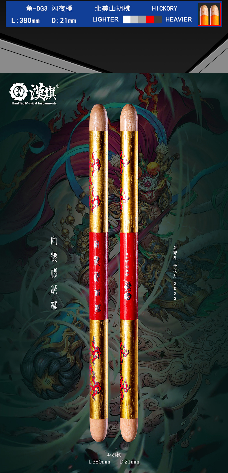 详细简介:官方小程序直通:漢旗大鼓槌中国鼓鼓棒胡桃木 角DG3长度38cm直径2.1cm大鼓棒湿涩防滑