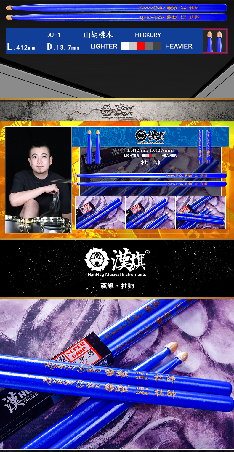 汉旗鼓棒 杜帅签名款架子鼓鼓槌DU-1