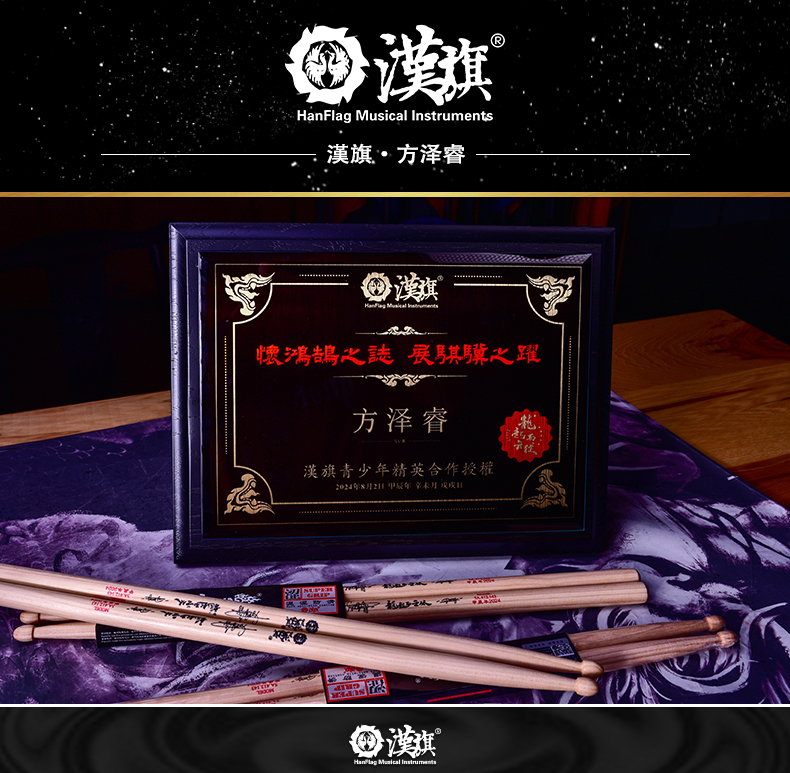 漢旗汉旗代言人 方泽睿签名款 架子鼓鼓棒 少年精英 鸿鹄之志系列