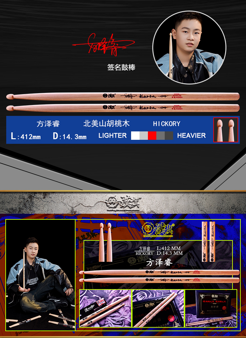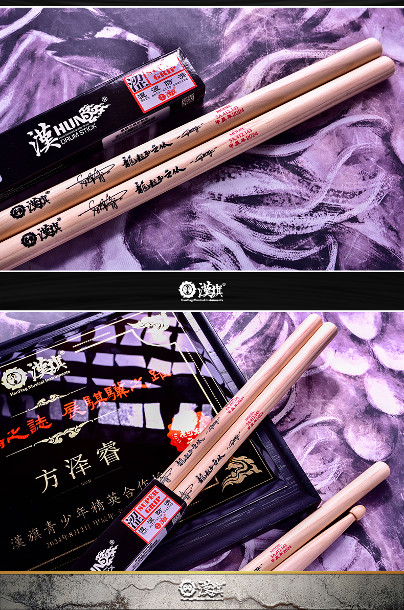 详细简介:官方小程序直通:漢旗汉旗代言人 方泽睿签名款 架子鼓鼓棒 少年精英 鸿鹄之志系列湿涩防滑