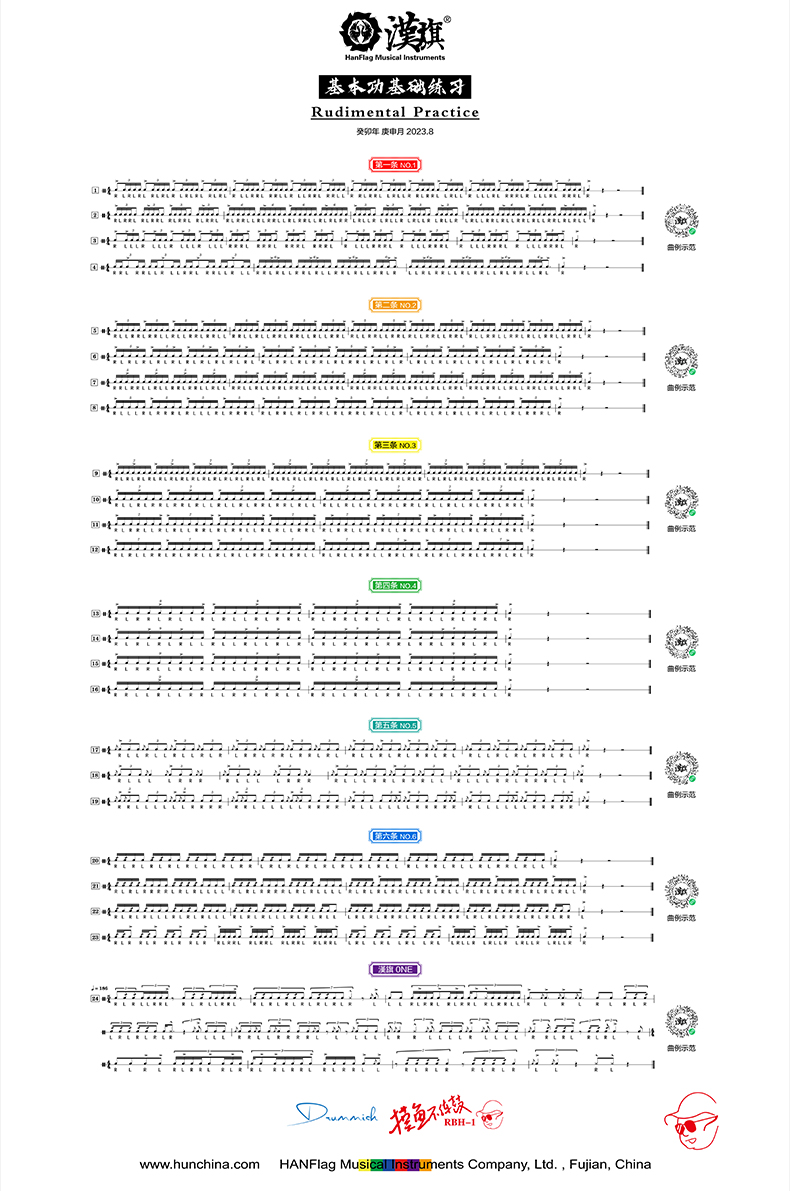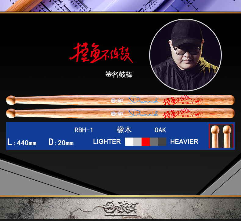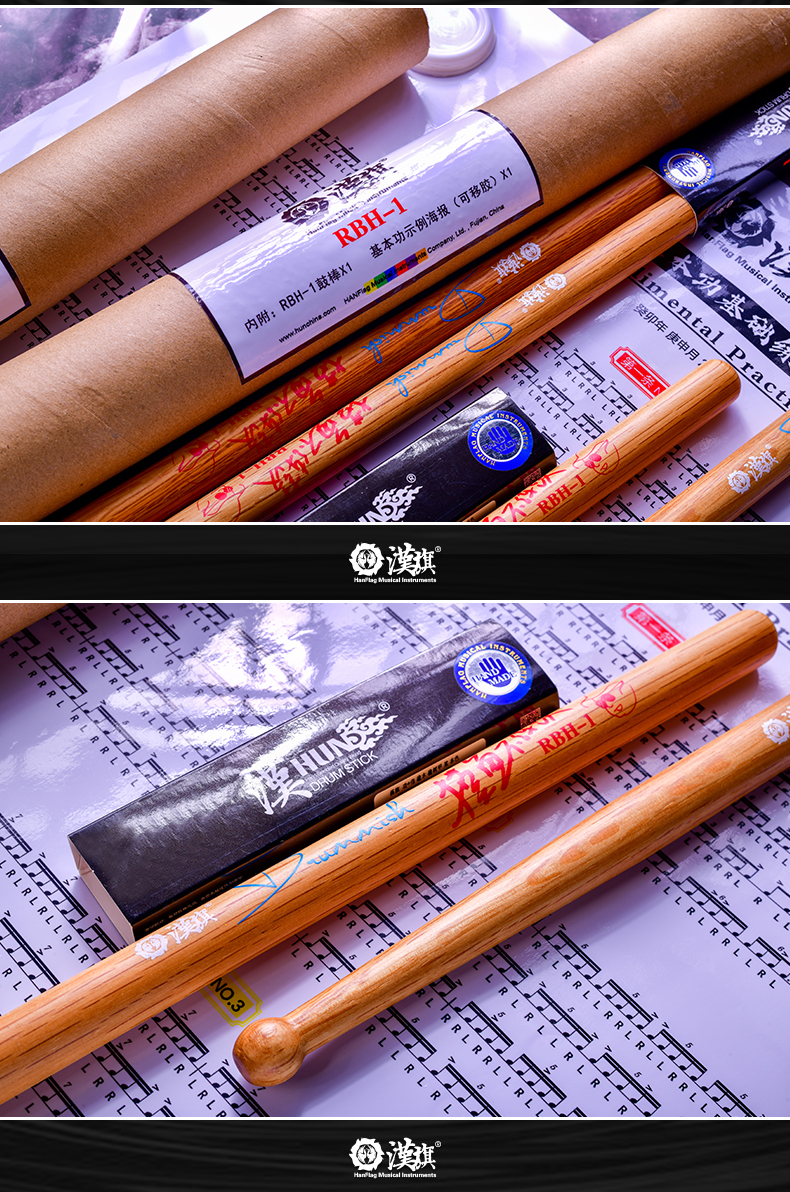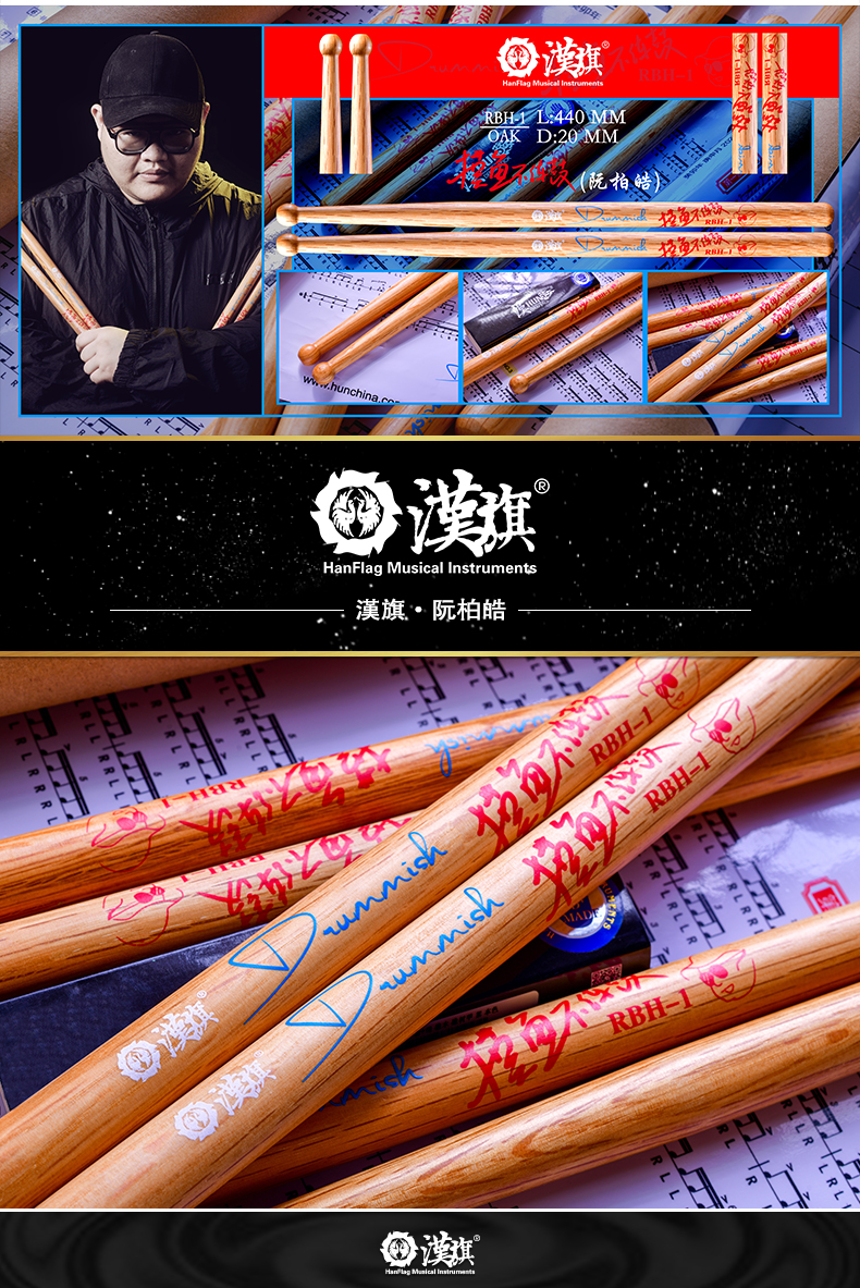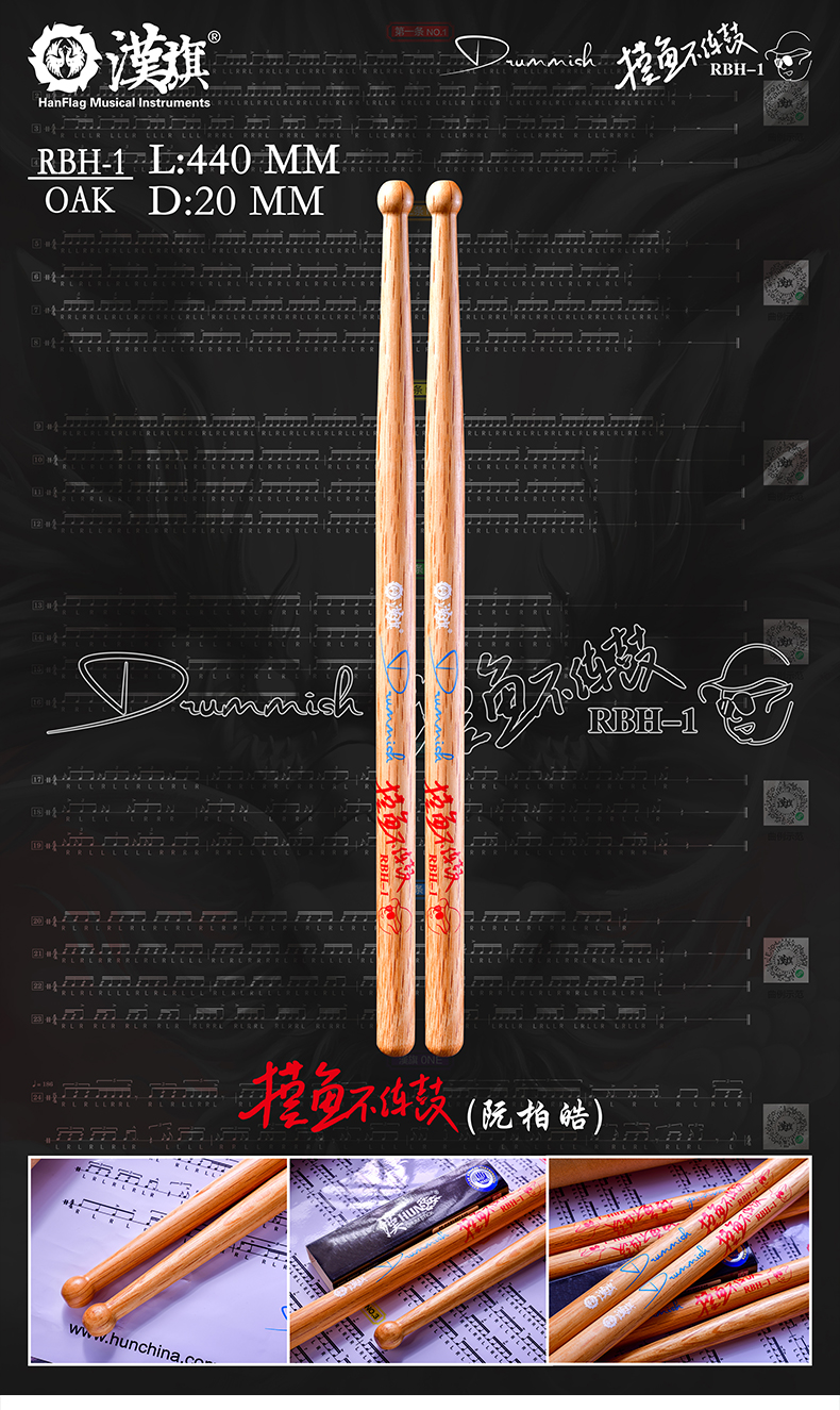 汉旗鼓棒代言人摸鱼不打鼓(阮柏皓)签名款鼓槌(附带练习海报)