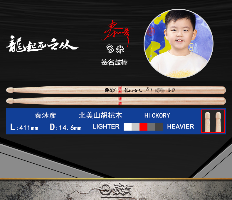 汉旗代言人秦沐彦签名款架子鼓鼓棒少年精英 鸿鹄之志系列