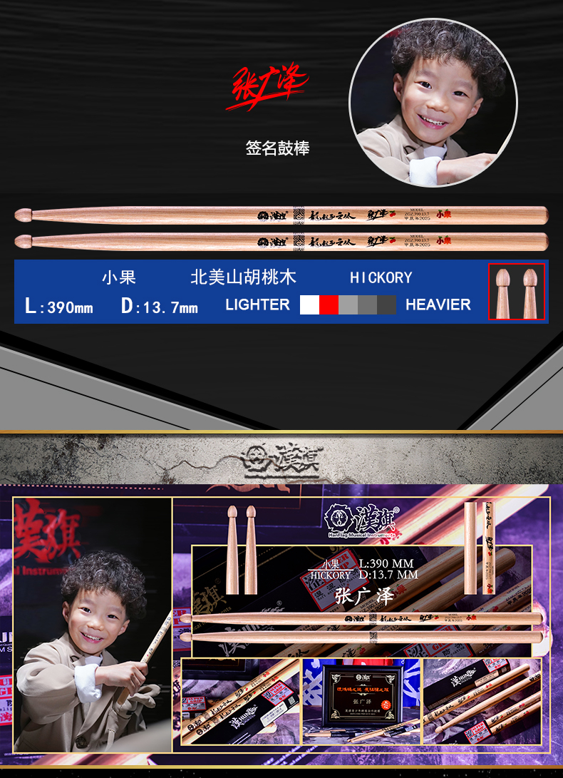 汉旗代言人张广泽-小果签名款架子鼓鼓棒少年精英 鸿鹄之志系列