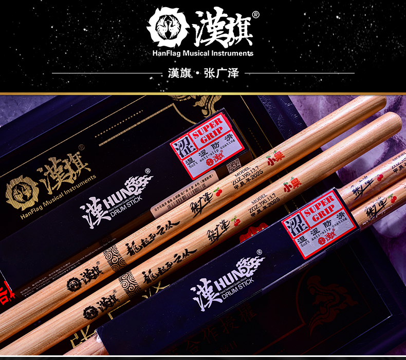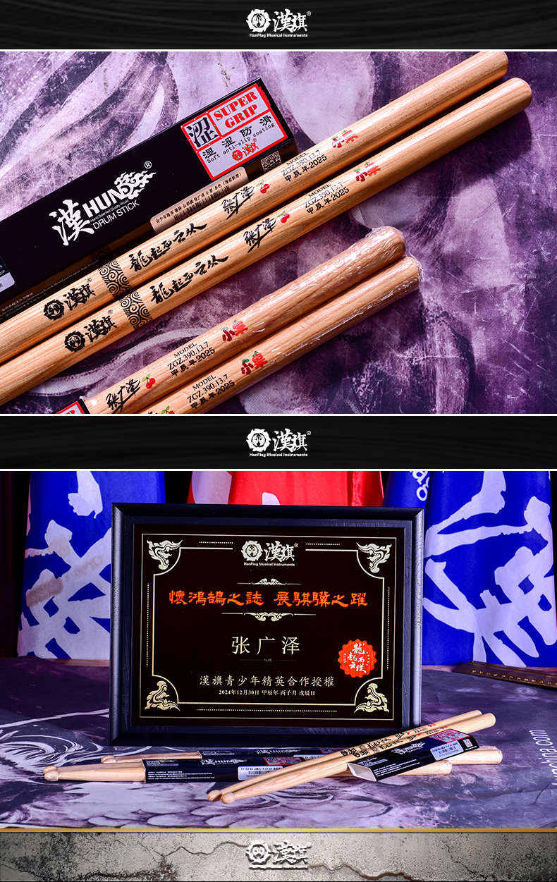 详细简介:官方小程序直通:漢旗汉旗代言人张广泽-小果签名款架子鼓鼓棒少年精英 鸿鹄之志系列