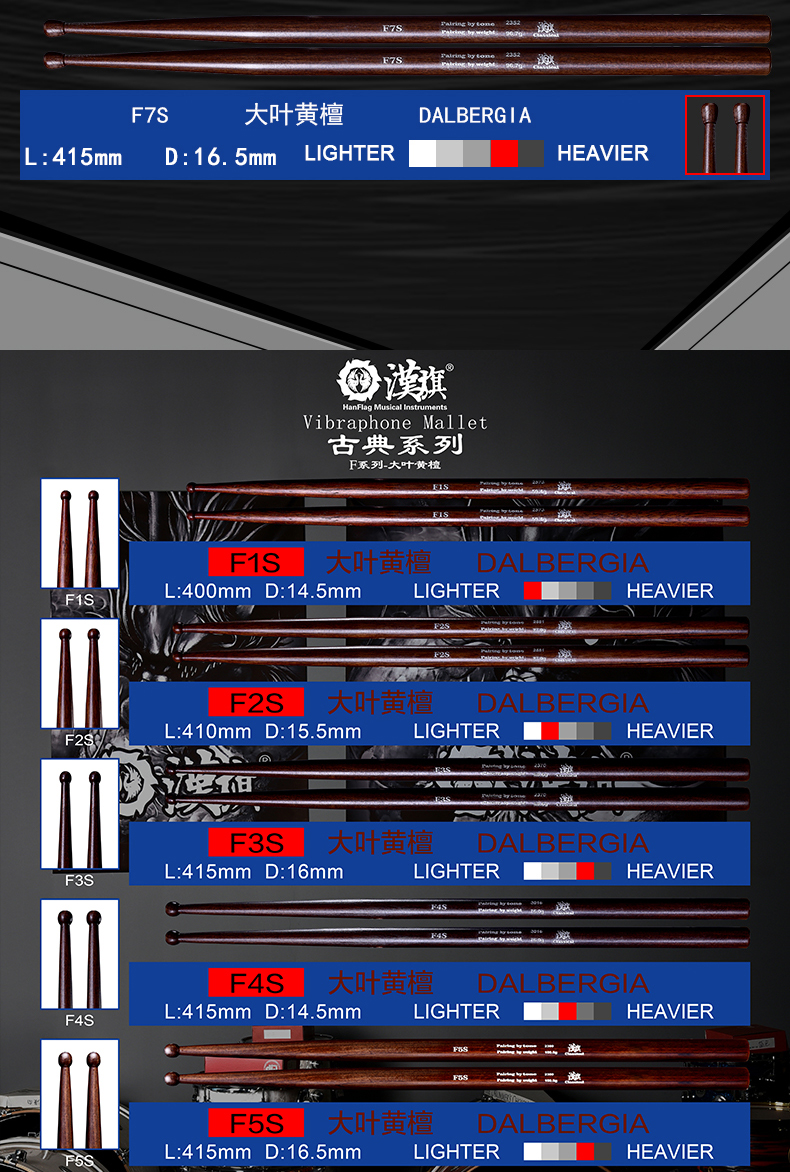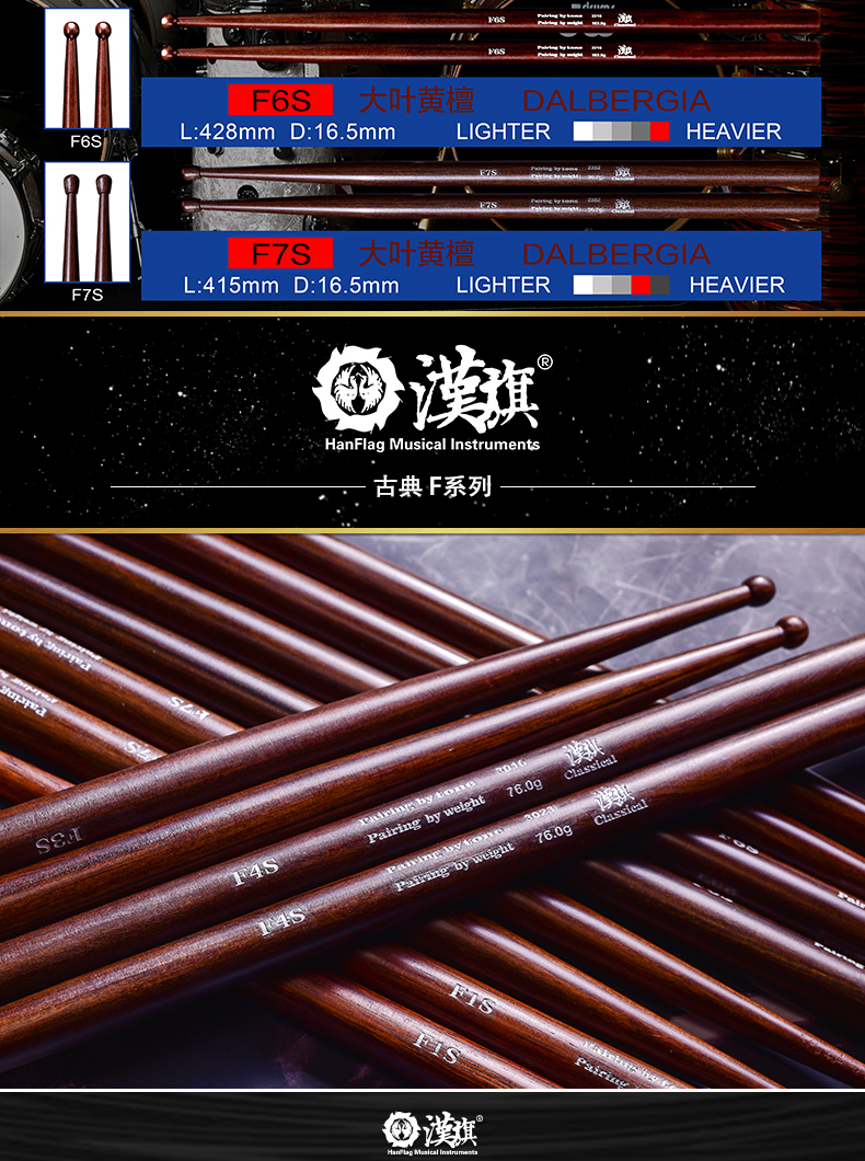 详细简介:官方小程序直通:汉旗古典小军鼓鼓槌大叶黄檀鼓棒F1S/F2S/F3S/F4S/F5S/F6S/F7S